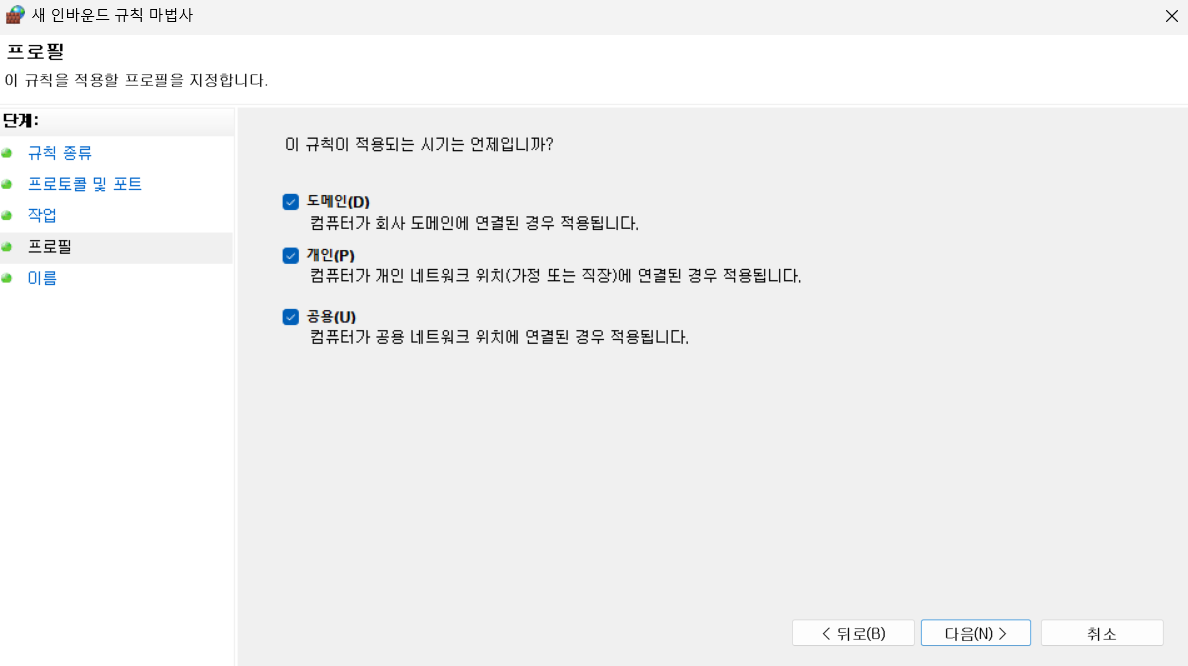 - 일단 이게 활성화되어 있으면, 외부에서 내 PC에 접근조차 되지 않는다.