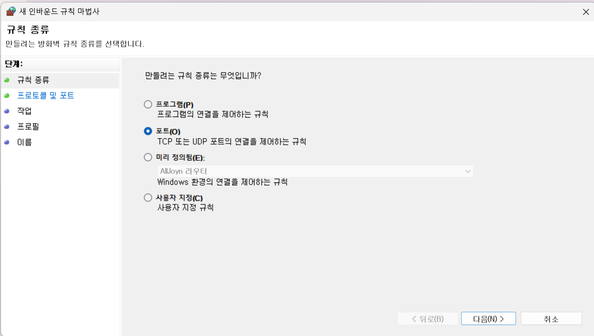 - 포트에는 개방할 포트 번호를 입력해주자.