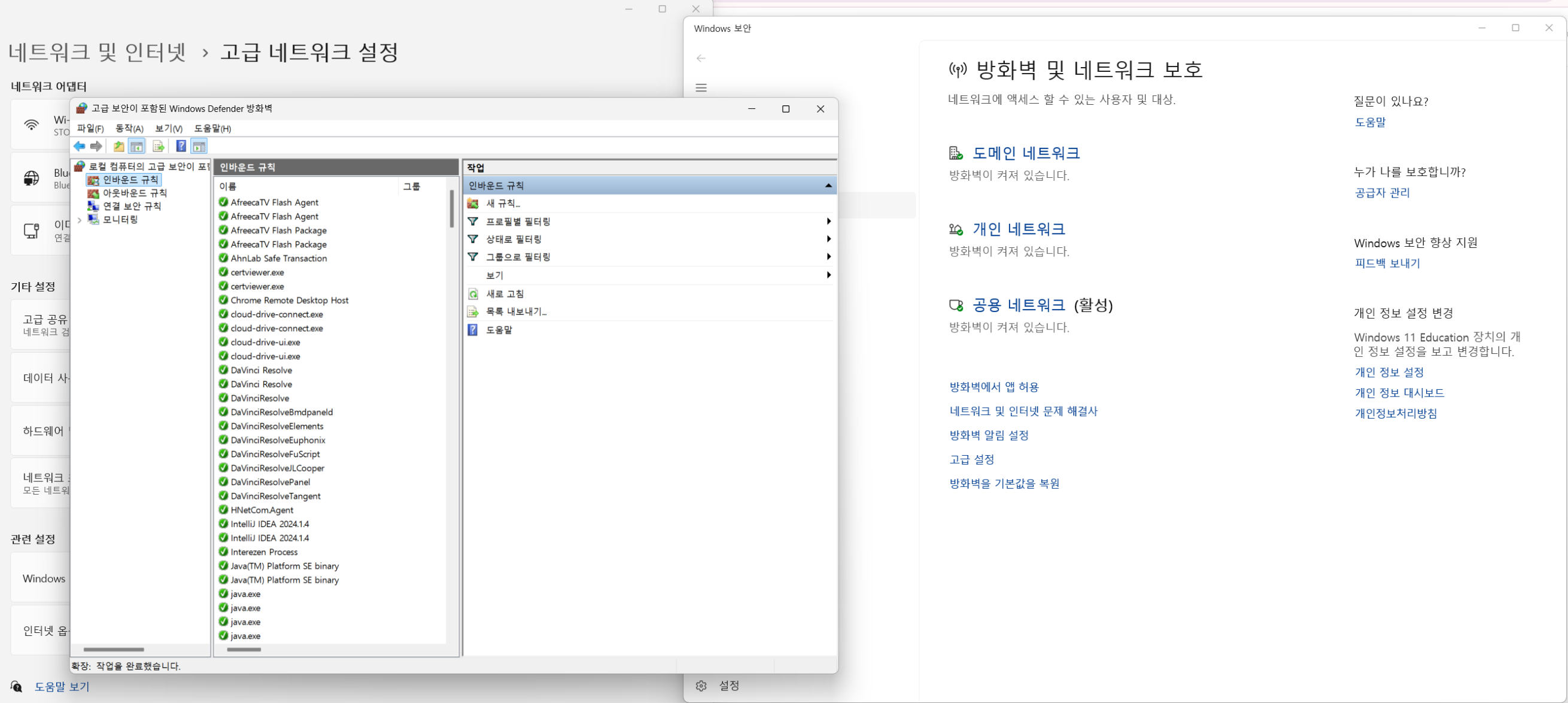 ("네트워크 및 인터넷" -> "Window 방화벽")