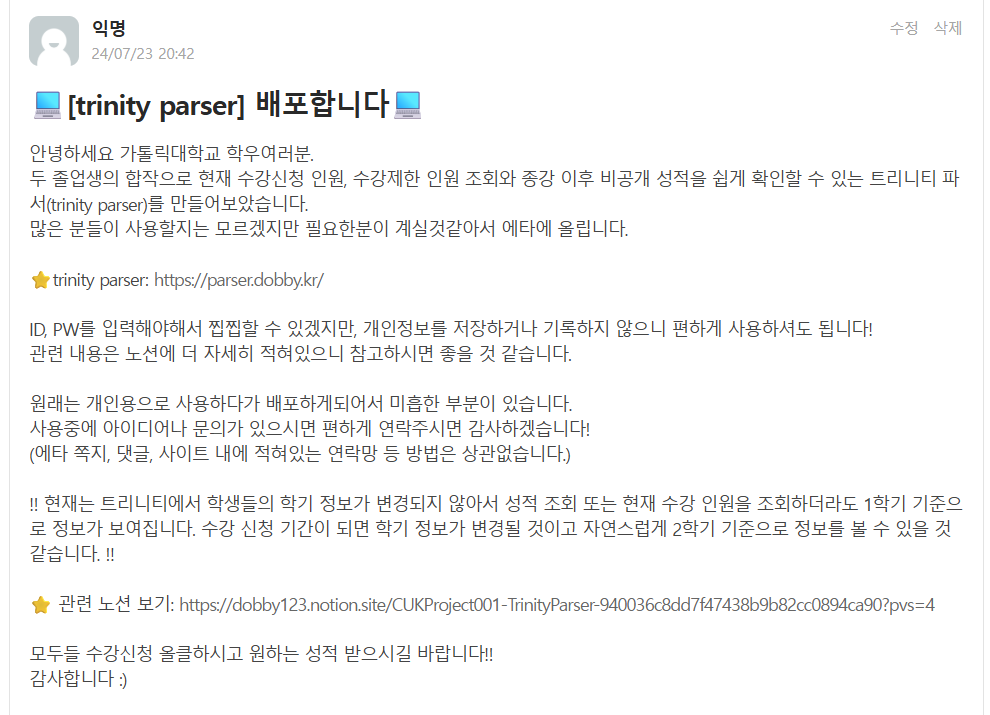 최초에 Trinity Parser를 만든게 24년 7월이었던 것 같다.